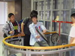不思議!回転する車輪を横にすると、身体が回り始めた!!
