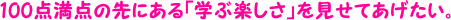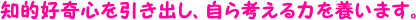 勉強の基本は、しっかり覚えて、まちがえないこと。計算や漢字、暗記事項を中心としたテストなら、がんばれば必ず100点がとれます。では、その先って何だろう?全部覚えたら勉強することってなくなるのかな?……もちろん、その先があるはずです。新たなことに挑戦するうちに、自分の知らない基礎があることを知る。じゃあ、これも覚えよう!……知識と思考力はこのように、互いに密接にかかわっています。