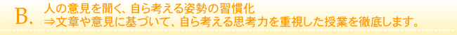 | ☆事実を正確に受け取り、自ら考え、意見を主張としてまとめあげることのできる生徒を育てます。 |