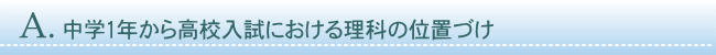 中学校の成績は英語・数学がよければ大丈夫と考えている人は多いのではないでしょうか。最近の私立高校の推薦入試でさえ、5教科の内申点の25点満点で受験可能かどうかを判断しています。また、ある公立高校の入試では、5教科のうち英語・数学・理科の内申を2倍にするという見方をするところもあります。理科・社会は主要5教科の一部であって、決して「おまけ」ではないのです。更に、出題傾向も平成15年を境に変わってきています。平成15年以前は中1〜中3までの化学の3つの単元から2単元分の問題、物理・生物・地学も同様に3つの単元から2単元分の問題で問1〜問8というような出題だったのですが、平成15年以降の問題は、平成18年度を例にあげると問1の中に中1・中2の物理、問2の中に中1・中2の化学、問3の中に中1・中3の生物、問4の中に中1・中3の地学、問5に中3の物理、問6に中2の化学、問7に中2の生物、問8に中2の地学というように中学3年間の理科からまんべんなく出題されています。昔のように「ヤマをはる」的な勉強方法では通用しない入試問題になってきているのです。500点満点の入試で、英語・数学・国語が80点台をとっても理科・社会が60点台ならば、内申にもよりますが上位校合格は厳しくなってしまいます。ですから中学の理科は1年の内容でもおろそかにできず、しっかり理解していかなければなりません。
