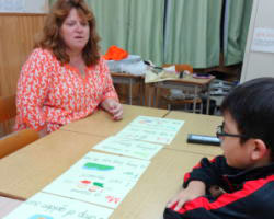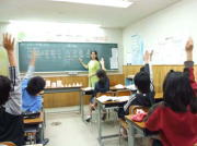 「勉強嫌い」をなくす為にも、屏風ヶ浦スクールでは授業の導入部や教材を工夫して、とにかく先生の授業に子供たちを引き込む『共演授業』を実践しています。
