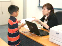 あらかじめパソコンにに生徒さんのカリキュラムを登録しておきます。パソコンには教材として数万枚分の問題データが保存されており、その中から生徒さんの学習状況にあった教材が出力されます。さらに問題の得点に応じて次のプリントが自動的に選択されるため、理解度に応じて効果的に学習を進めることができます。