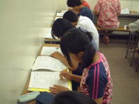 みんなよくがんばりました。たくさん問題を解いて満足顔の子、もっとできたはずなのにとくやしがる子。今日一日で、ほんの少しかもしれませんが、みんな成長しています。1か月後、1年後にはもっともっと伸びているはずです。 |