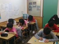 小3・小4の少人数クラスです。 漢字や計算はもちろん、作文や「ひらめき」を重視した算数の指導も行っています。