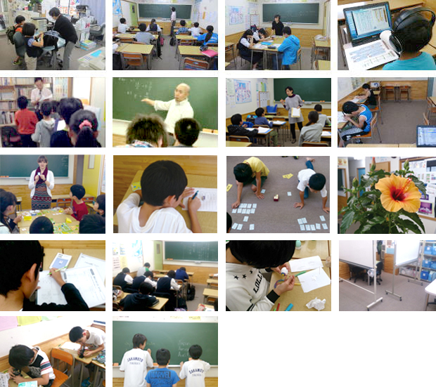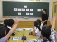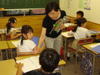 英会話の授業はキッズクラブの講師が担当します。 国語では書写や作文指導、百人一首の暗唱、算数は一斉に指導する日と個別に指導をする日を分け、生徒の力に応じた授業を展開します。