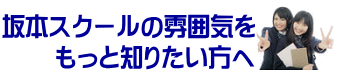 学校の成績を上げたい! 検定に合格したい! 志望校に入りたい! 英語をもっと好きになりたい!・・・。 坂本スクールの生徒たちはみんな、今よりもぐんと成長した未来の自分に向かって前向きに勉強しています。最初はイヤイヤ通ってくる生徒たちもいるでしょうが、仲間のやる気に後押しされて、いつのまにか自分もすっかりその中に溶け込んで勉強に取り組む姿勢が芽生えるものです。