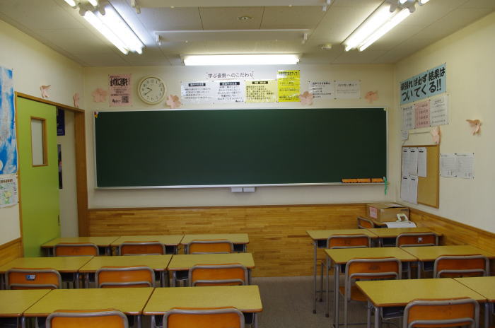 坂本スクールが一番の売りは、少人数指導です。広い教室で伸び伸びと、しかも教師の目がしっかり届く環境で集中して勉強できます。また、少人数だからこそ各生徒の弱点をしっかり把握することができ、宿題や残勉(のこべん)などできちんとフォローできます。中学生は午後7時から授業開始。部活動との両立も十分可能です。