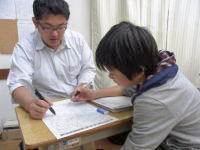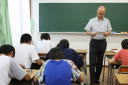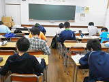 今日は、午後4時20分まで5教科を入試形式でテストと解説を受ける授業です。まず、国語のテストからスタートです。朝のはりつめた空気の中で生徒の鉛筆の音だけが響きます。本番と同じように朝9時から頭をフル回転します。眠い目をしていた人もいつのまにか真剣です。制限時間50分が過ぎ、テストが終了。みんな顔が引き締まっています。朝の初めの顔とは大違いです。何かホッとしたような集中のあとの充実感がどの生徒の顔にもうかがえます。10分の休憩後、英語、数学とテストは続きます。教室は大勢の人がいるのに、物音一つしません。ピーンと張りつめた緊張感が走ります。