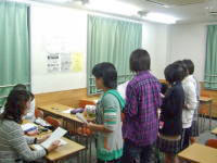 午後は、理社のテストと解説です。理社も大切。手を抜くことはできません。単純な知識問題から、応用・記述問題まで様々。優先順位を考えながら、どんどん解答を進めなければなりません。あっという間に時間が過ぎて、解説の時間になってしまいます。最後に今日採った点数を記入して終了です。目標点に届いた人、届かなかった人と悲喜こもごもです。でも、一日を終えた充実感と満足感でみんなの顔はなんとなく晴れやかです。教室は質問している生徒、友達どうしでおしゃべりをしている生徒と数人の生徒が残って勉強しています。