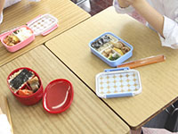 こうして午前中の授業が終わり、次は楽しい昼食です。家から持ってきたお弁当を開いたり、コンビニでパンやおにぎりを買って食べたりと、皆思い思いの昼ご飯を楽しんでいます。友達どうしのおしゃべりや笑い声とともにプ〜ンとフライドポテトの香りも漂ってきます。教室は朝とは違ってなんとなくのどかな感じがしています。
