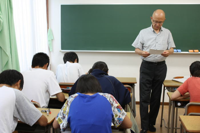 高校入試前のある日曜日、教室は暖房が効いているとはいえ、まだまだ寒い朝です。今日は朝9時から入試演習の日です。昨日の土曜日は夜10時過ぎまで理社の授業がありました。まだ、講師も生徒も起きたばかりか、目がはれぼったい人がいます。